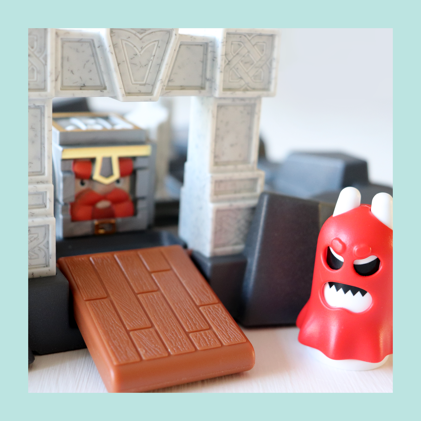 Kies een opdracht en plaats de stukken op het spelbord zoals getoond in de opdracht. Rol de kubusvormige held van vak naar vak om de magische sleutel met de daarvoor bestemde zijde op te pakken. In opdrachten met het monster zul je ook het wapen moeten oppikken om het monster te verslaan. De held kan in vier verschillende richtingen naar elk aangrenzend veld rollen, maar niet naar vakken die geblokkeerd zijn door kisten, zuilen of het monster. De held kan wel over kristallen en de magische sleutel rollen, maar enkel met zijn onderzijde zolang deze leeg is. Wanneer de held op zijn schild ligt, kan hij roteren en zijn oriëntatie aanpassen, zolang er geen kisten of het monster deze draaiing blokkeren. De poort opent zodra de sleutel is opgepakt en de held rechtop voor de poort staat, met zijn gezicht naar de poort gericht. De ontsnapping is dan geslaagd! 🏆