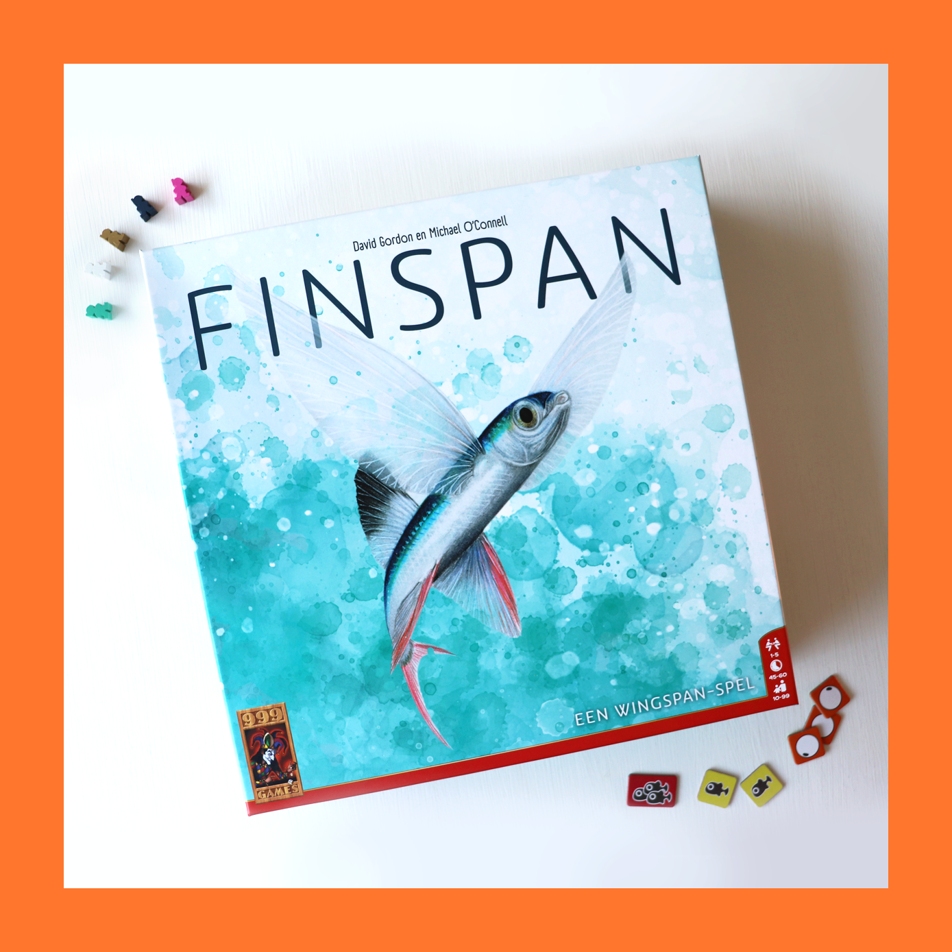 Finspan is, na Wingspan en Wyrmspan, het derde deel in de spellenreeks. Het spel bevat herkenbare elementen uit Wingspan, maar is toch vernieuwend genoeg. Zo zijn er leuke toevoegingen zoals eieren, jongen en scholen op je spelersbord. Door eieren uit te laten komen, krijg je jongen, die je bij elkaar probeert te brengen om scholen te vormen die veel punten opleveren. Ook de prestaties zijn goed in het spel verwerkt. Je kunt ervoor kiezen om met de A-zijde van het prestatiebord te spelen, met vaste doelen, of de B-zijde te gebruiken in combinatie met doeltegels, zodat je in elk potje een nieuwe samenstelling van prestaties hebt. Hoewel deze prestaties slechts een klein onderdeel van het spel zijn, zorgen ze wel voor net wat meer variatie. In Finspan speel je kaarten niet met grondstoffen, maar door te betalen met bijvoorbeeld kaarten, jongen of eieren. Het is leuk dat de kaarten waarmee je hebt betaald niet voorgoed weg zijn, maar later weer terug in het spel kunnen komen. De tofste actie in het spel vinden we het duiken. Dit is niet alleen een belangrijk element dat we kennen uit Wingspan, maar het is ook zeer thematisch in Finspan. In combinatie met specifieke vissen kun je handige beloningen activeren en zo je duikacties nog krachtiger maken. De extra regels om Finspan solo te spelen zijn heel eenvoudig. Het spel met de zogenoemde Nautoma speelt heel soepel en kan zelfs worden uitgebreid voor meer uitdaging. Al met al is Finspan een tof spel in de wereld van Wingspan. Het bevat voldoende nieuwe elementen en uitdagingen, maar is net iets eenvoudiger dan Wingspan, omdat je met minder dingen rekening hoeft te houden. Het verschil in moeilijkheidsgraad is niet enorm. Persoonlijk hadden wij verwacht dat het verschil in moeilijkheid groter zou zijn, zodat er een groter onderscheid zou zijn tussen Finspan en Wingspan. Qua spelmateriaal missen we de unieke onderdelen die Wingspan heeft, zoals het vogelhuisje en de eieren. In Finspan moet je genoegen nemen met een aantal houten duikers en vooral veel kartonnen fiches. Speltechnisch is dit niet erg, maar een eyecatcher had het spel aantrekkelijker gemaakt en zou nieuwe spelers sneller laten kennismaken met deze eenvoudigste versie van de trilogie. Finspan is voor ons vernieuwend en vermakelijk genoeg, waardoor het zeker niet overbodig is als je Wingspan al in huis hebt. Mocht je Wingspan (en Wyrmspan) nog niet hebben, dan is Finspan een mooi startpunt en zeker het proberen waard.